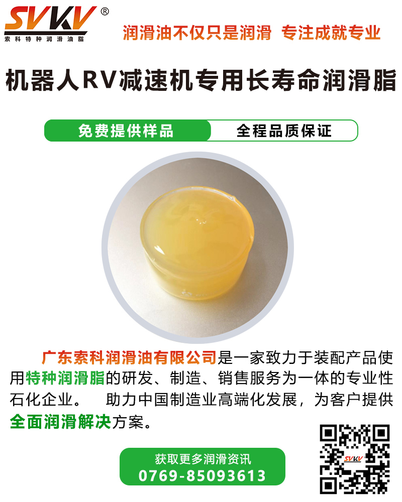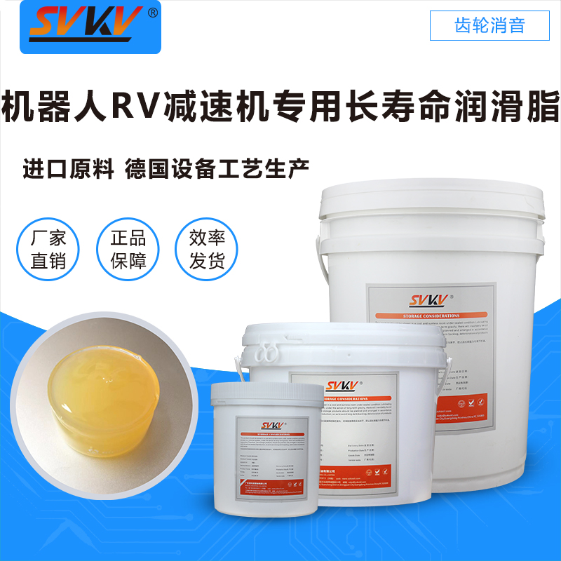 索科SVKV機器人RV減速機專用長壽命潤滑脂選用高性能基礎(chǔ)油,并添加多種高效抗氧化、抗腐蝕添加劑精制而成,是專為各種機器人減速電機齒輪和傳動部位而研制的齒輪潤滑油脂。索科SVKV機器人RV減速機專用長壽命潤滑脂能有效減少RV減速機磨損,降低噪音,達(dá)到延長使用壽命的效果。