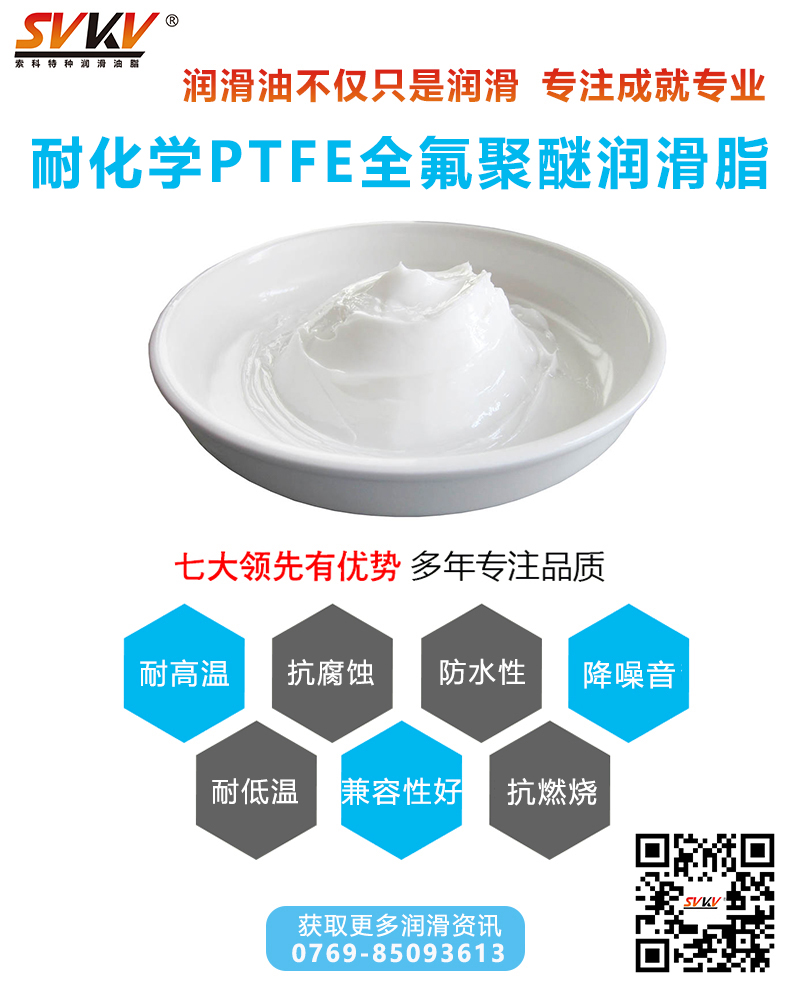 索科SVKV耐化學(xué)PTFE全氟聚醚潤(rùn)滑脂適用于各種活性化學(xué)品侵蝕或酸堿腐蝕環(huán)境中的機(jī)械設(shè)備、齒輪、軸承等零部件的潤(rùn)滑和密封,以及輸送各種腐蝕性氣體的管道閥門(mén)的密封潤(rùn)滑。