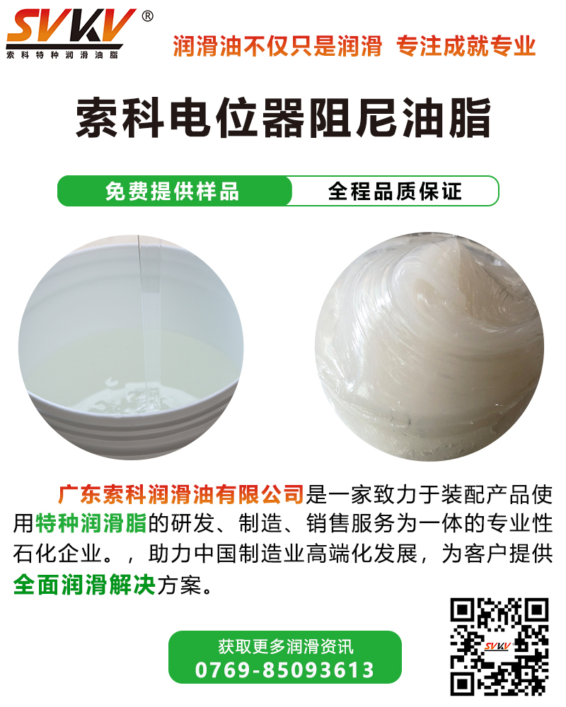 電位器的種類繁多,使用的場合不同,索科潤滑油對應(yīng)出多款不同粘度的潤滑油脂,能滿足各種電位器不同工況阻尼要求,同時還可以按客戶實際需求進行個性化定制。