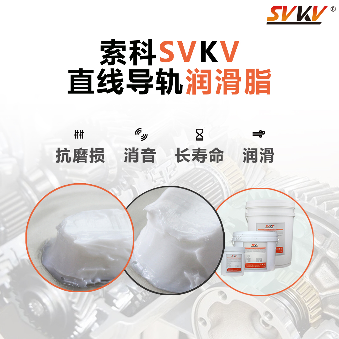 那么直線(xiàn)導(dǎo)軌該選擇哪款潤(rùn)滑脂呢?索科技術(shù)向大家推薦索科SVKV 620系列直線(xiàn)導(dǎo)軌潤(rùn)滑脂,由全合成基礎(chǔ)油和高性能復(fù)合稠化劑精煉而成,內(nèi)含特殊的(EP)抗磨聚合物,具有優(yōu)良的高速潤(rùn)滑性和承載能力。SK系列導(dǎo)軌油脂還具低摩擦系數(shù),提高絲桿的效率,并延長(zhǎng)使用壽命;優(yōu)異低溫防卡性能,起動(dòng)扭矩極小,不凍結(jié)不會(huì)龜裂;抗微動(dòng)磨損保護(hù),可降低滑動(dòng)摩擦微震動(dòng)產(chǎn)生的噪聲等特點(diǎn)。